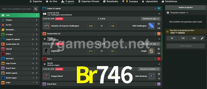 A aposta Br746 oferece aos jogadores a experiência mais conveniente de apostas em eSports!